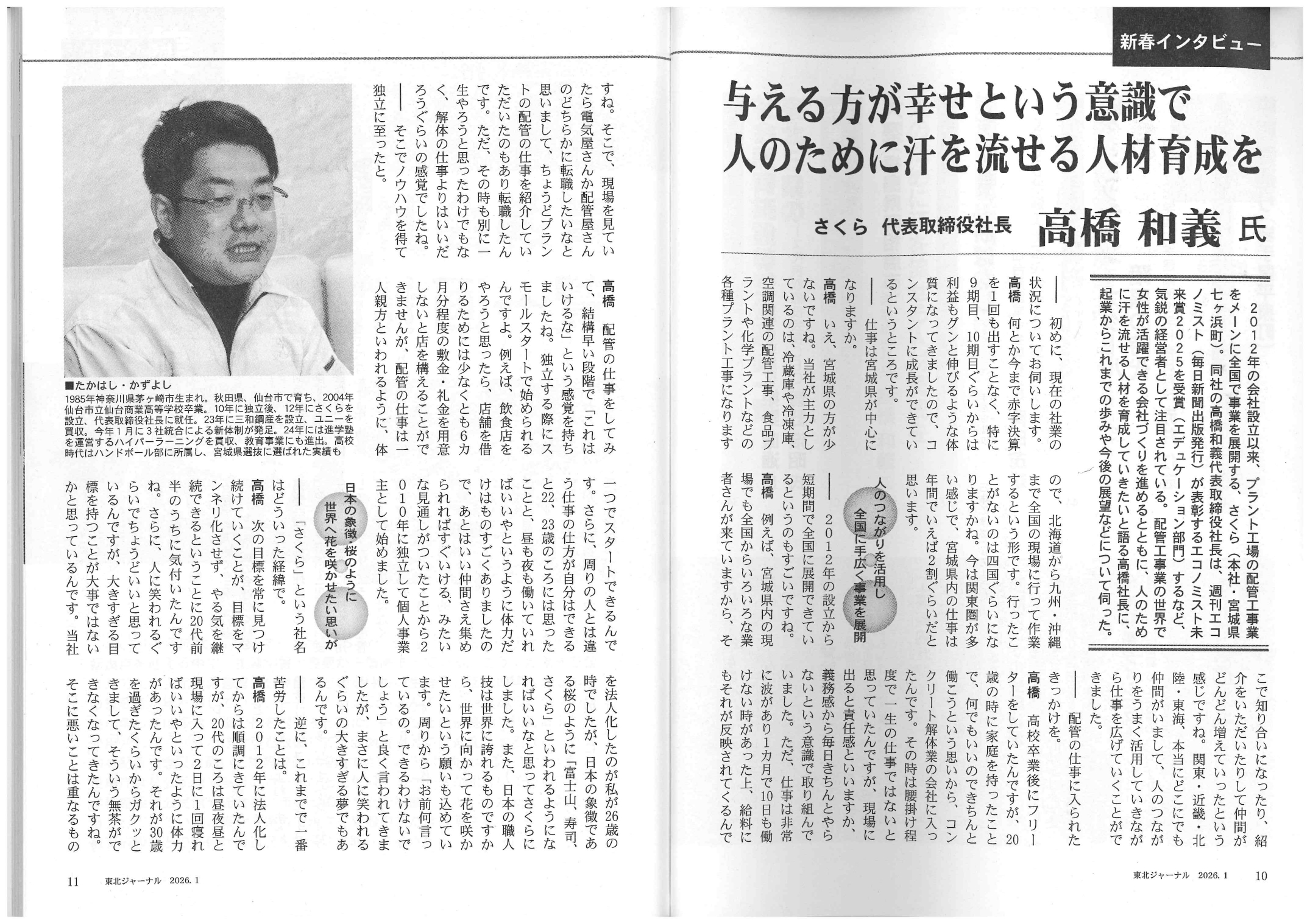 【東北ジャーナル 】新春号に代表インタビューが掲載されました。